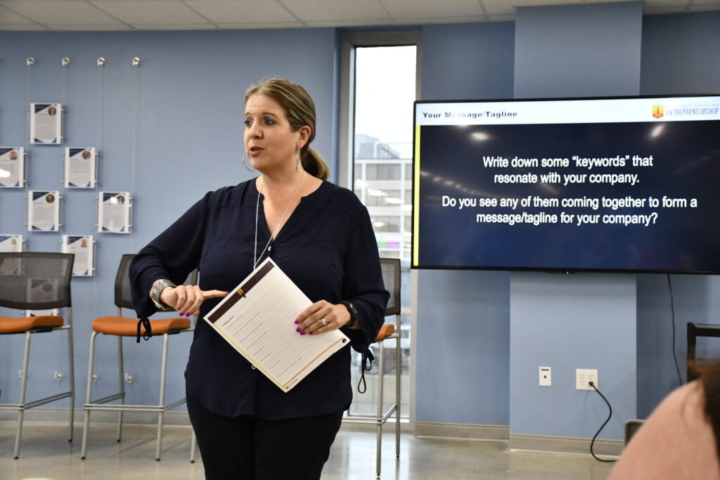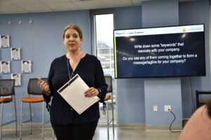 Dr. Bennett had the crowd write down some “keywords” that resonate with their company, that they would want people to associate with their brand.