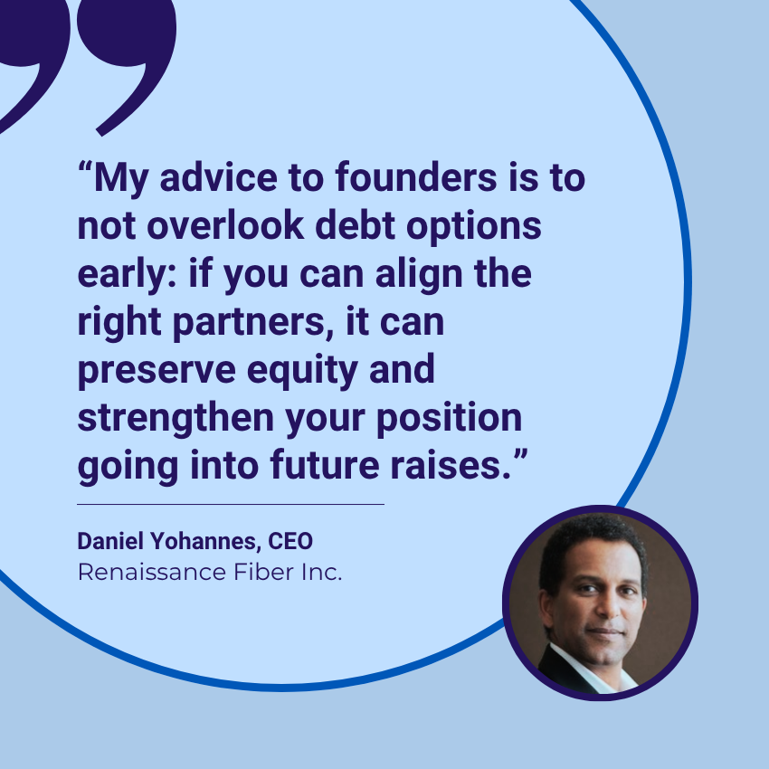 “My advice to founders is to not overlook debt options early. If you can align the right partners, it can preserve equity and strengthen your position going into future raises,” shared Daniel.